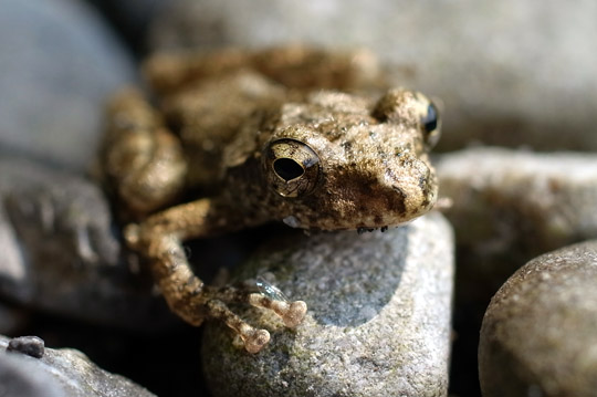 2日連続の「川流され」を満喫し、帰り支度をしていると足元にカジカガエルを発見!