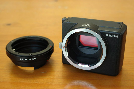 GXR本体に画像のMOUNT A12ユニットとOMレンズ用マウントアダプタを装着することにより OLYMPUS ZUIKOレンズを使用できることがわかった。(A12はライカMマウント用に開発された)