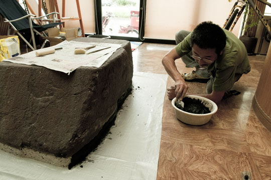 黒砂利の洗い出し技法はぶっつけ本番で・・・