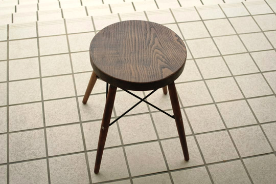 改装祝いにと同じケヤキの端板で作った丸椅子が届けられました。