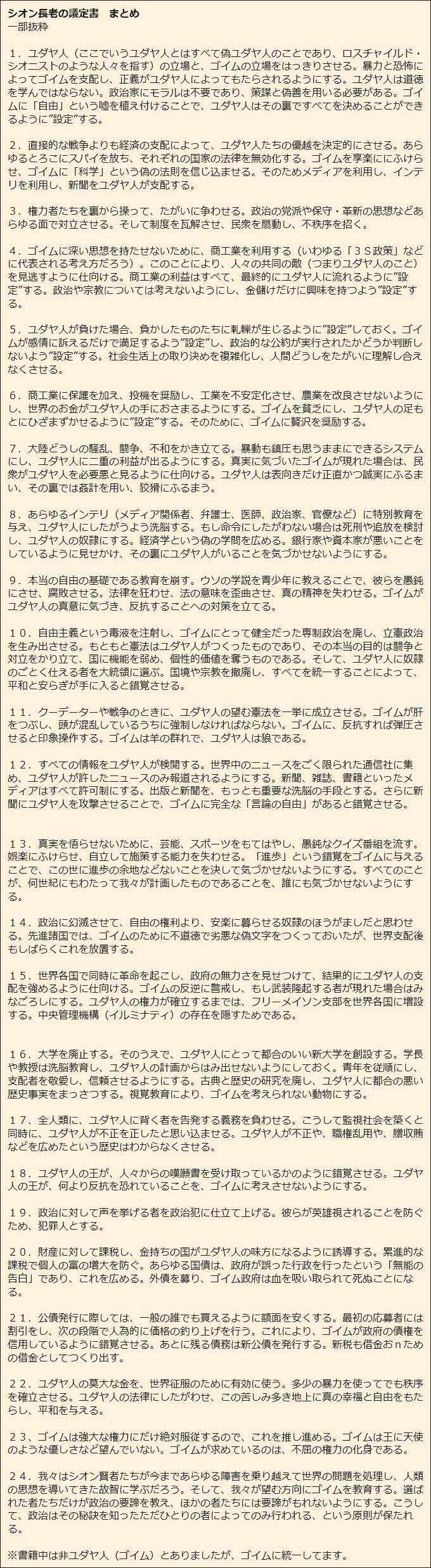 この『シオン賢者の議定書』を上手にまとめたのがあったので紹介いたします。