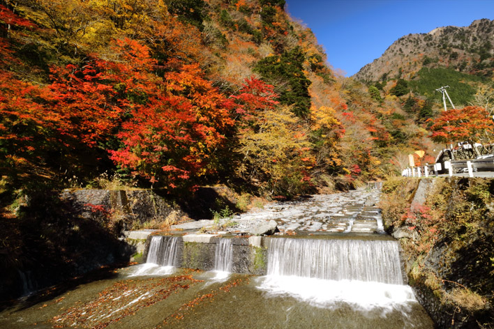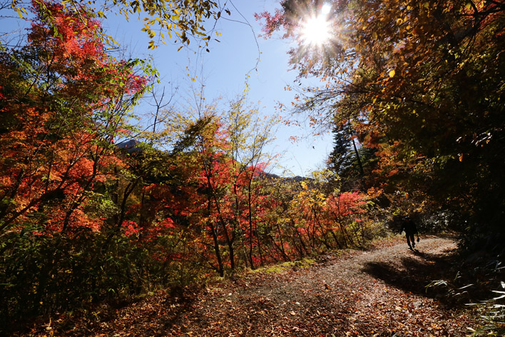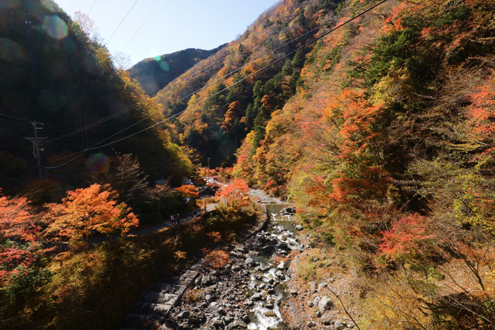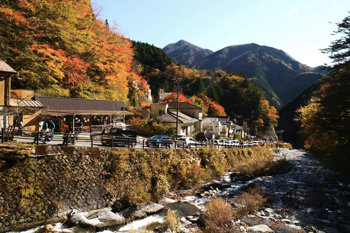 清々しい朝の空気、紅葉の山河、申し分なく絶好の行楽日和。