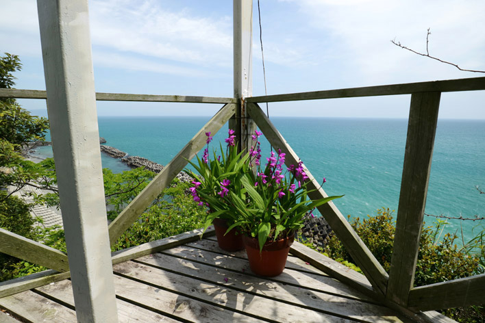 大崩海岸の断崖絶壁の上、地震なんて気にしない。