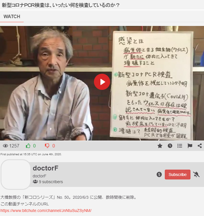 生前、「PCR検査は研究目的のためのものであり、