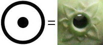 勾玉の穴の部分に八弁の文様。